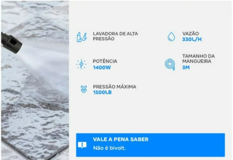 Para evitar uma baixa pressão na água da sua lavadora, a água utilizada deve vir da rua, com alta vazão/volume de água, se vier da caixa d'água a vazão pode ser muito baixa e em alguns casos a lavadora nem chega a funcionar. As conexões como o engate rápido, devem estar bem fixados.